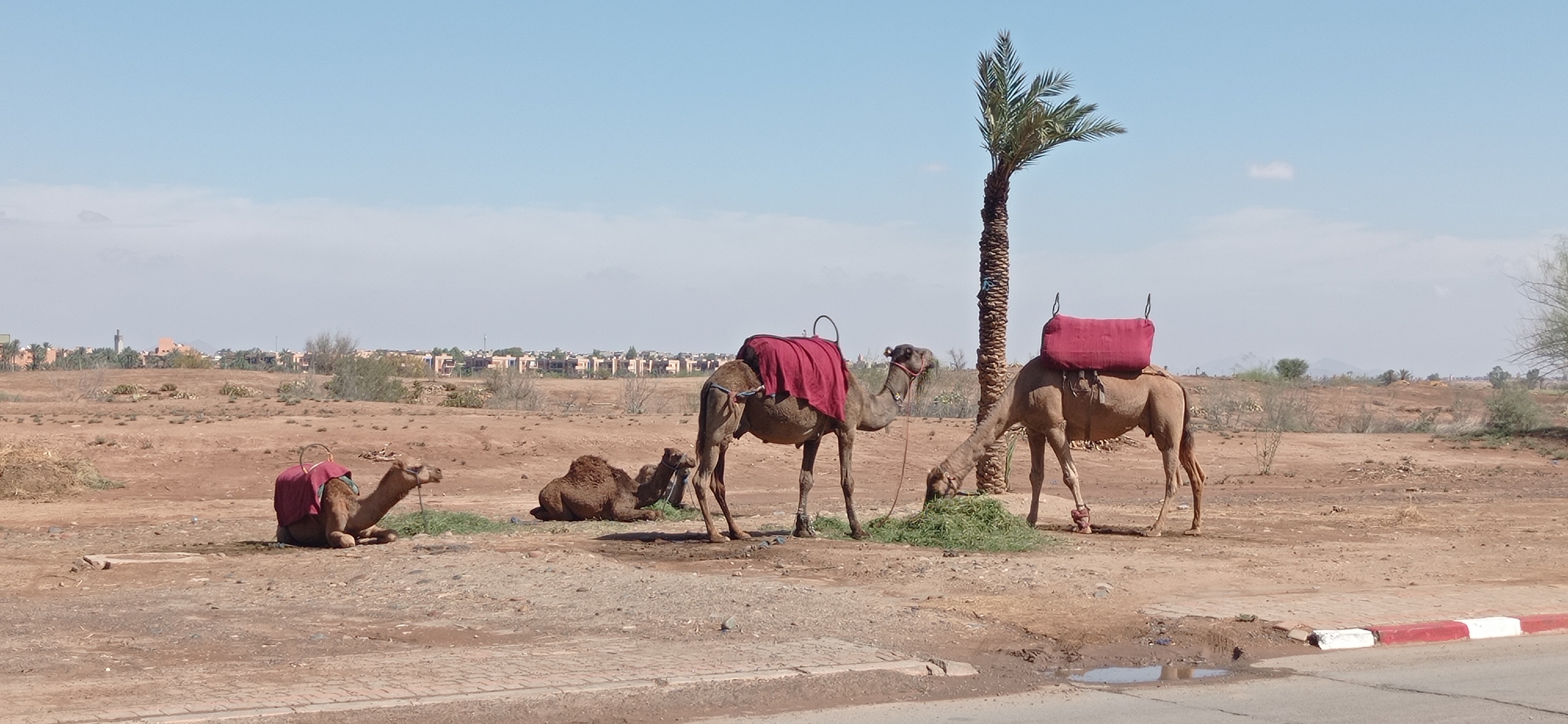 Wir wollten uns die Palmerie anschauen, leider ist der schöne Teil dort privat und von Mauern umgeben. Aber wenigstens haben wir ein paar Kamele und Dromedare gesehen und fotografiert.